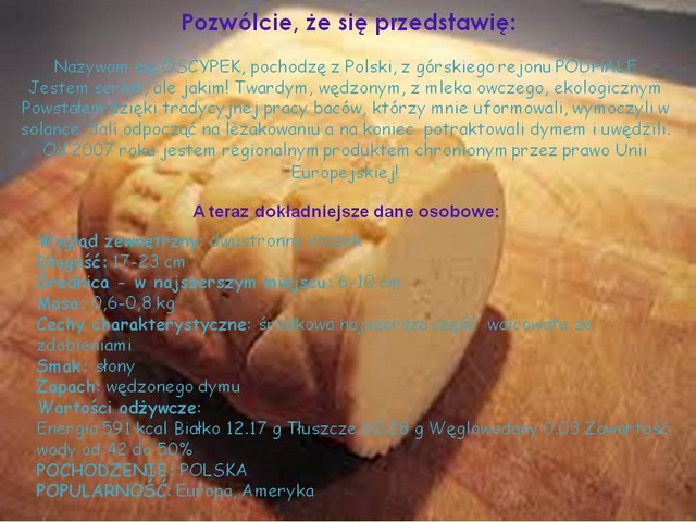 Autor: , wysłano: 28.03.2013, 13:12 Bardzo mi się podoba Twoja prezentacja. Wymieniłeś wiele metod "upowszechnienia" polskiego oscypka. Łatwo się je czyta i szybko rozumie. Świetny przekaz idei. |