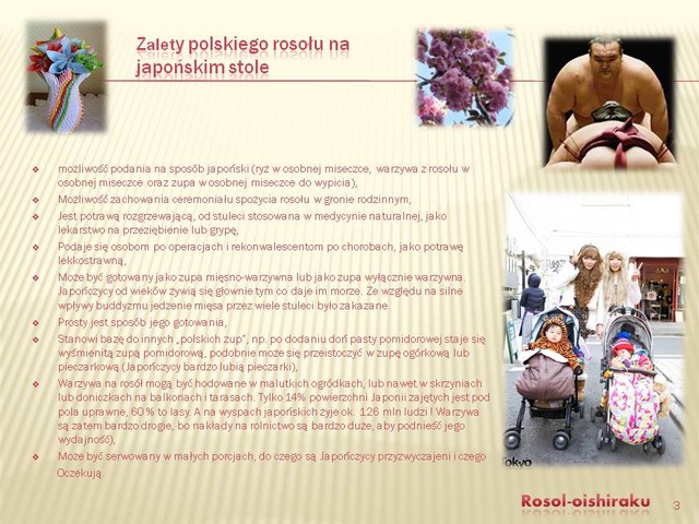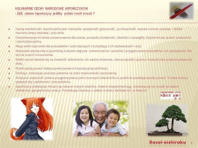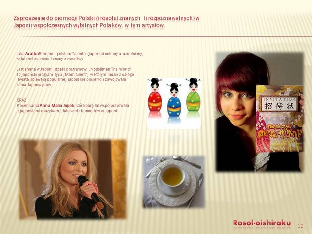 Autor: , wysłano: 2.04.2013, 08:03 Podkreślę raz jeszcze, że moim zdaniem żadna inna praca nie wskazała tylu róznic kulturowych i zalet promowanego produktu, co Twoja. Jednocześnie wskazałaś, jak zniwelować różnice kulturowe, jakie występuja pomiedzy Polską a Japonią, a przede wszytkim między Polakami a Japończykami. |