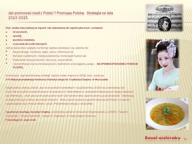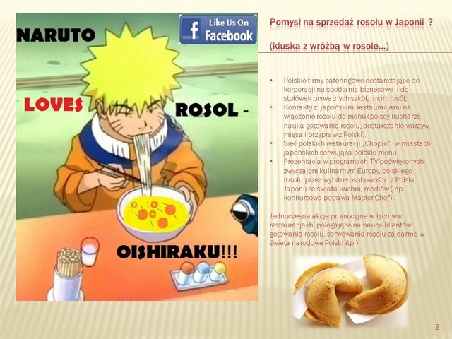 Autor: , wysłano: 28.03.2013, 08:37 Brawo, świetnie znasz i rozpoznajesz różnice kulturowe, jakie trzeba pokonać wprowadzając na japoński rynek nowy produkt. Znalazłaś tez podobieństawa, które pomogą "przyjęciu się" tej polskiej nowości w Japonii. DOBRA ROBOTA. Rozumiem,że miałaś bardzo dużo ciekawych wiadomości. |