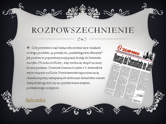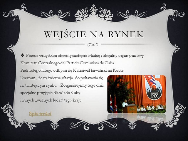 Autor: , wysłano: 1.04.2013, 23:02 Drogi Kamilu, Zadanie polega na tym , aby wybrać kraj w którym będę napotykał się na problemy z promocją wybranego przeze mnie produktu. Uważam, iż Kuba to idealne przeciwieństwo dla promocji produktu jakim jest nasz górski rarytas ;) W tym artykule udowodniłem, że pomimo trudnego miejsca i ustroju politycznego (jest to państwo komunistyczne) , to dobra taktyka marketingowa może zmienić punkt widzenia odbiorcy. Pozdrawiam i czekam na kolejne ciekawe pytania ;) |
